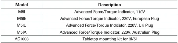 technical details of Model 5i Advanced Force/Torque Indicator