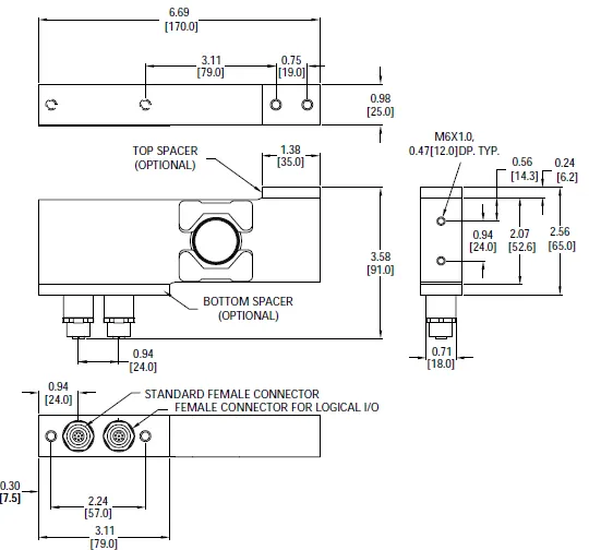 Dimensions and specifications of Digital Single Point Load Cell SPF5 Dual 4086D subject to change without notice