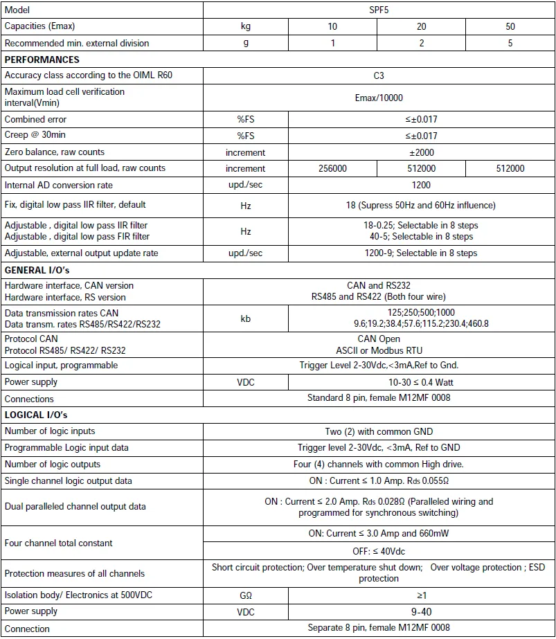 Below you can view or download the datasheet of Digital Single Point Load Cell SPF5 Dual 4086D.